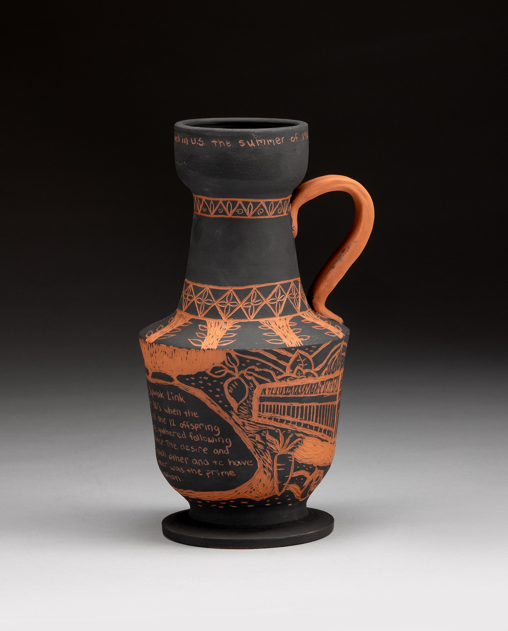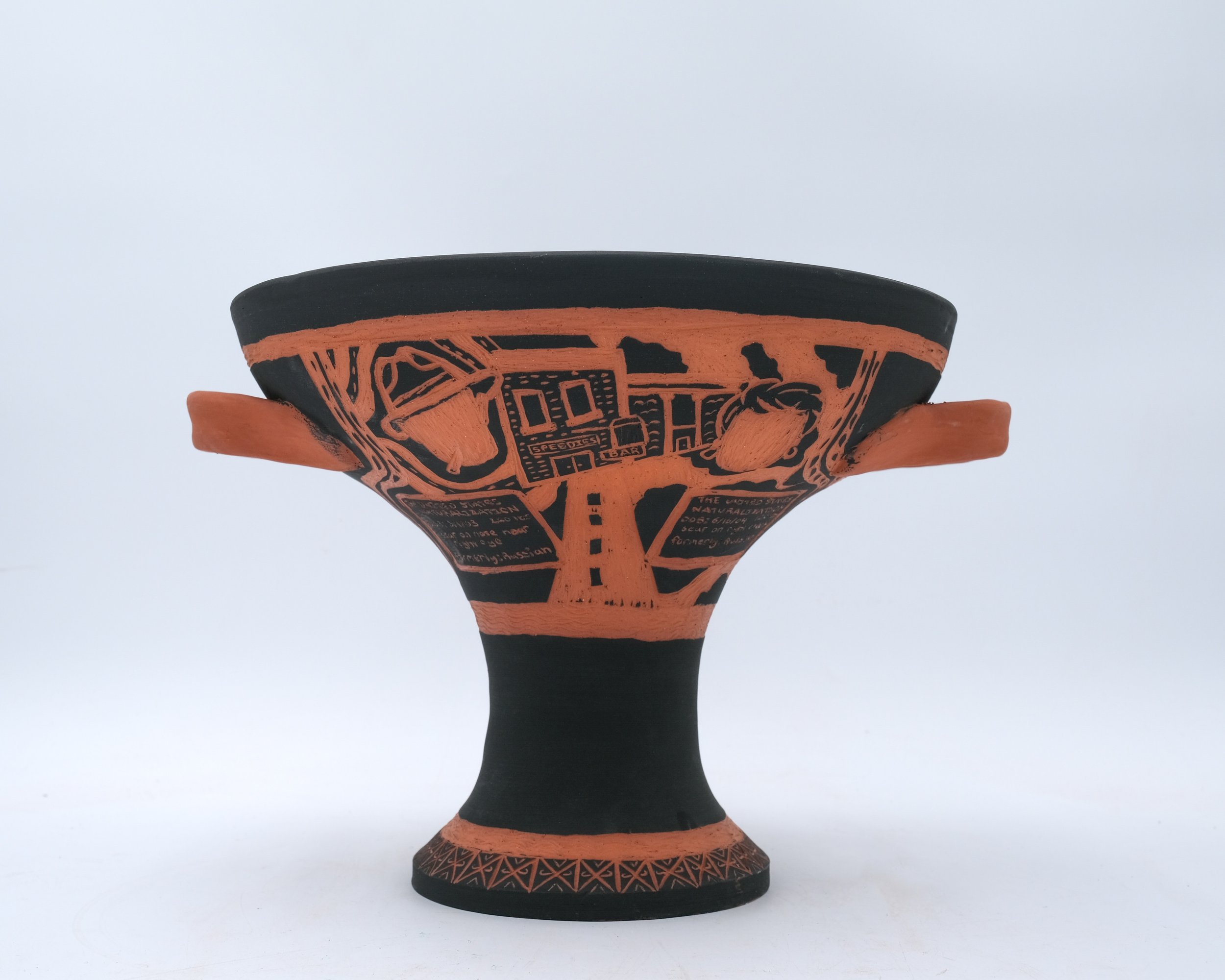 This ceramic vessel series marks a pivotal moment in my development as an artist, revealing how central process, research, and intuition are to my practice. Created for my final drawing course at community college, the project began with a desire to explore narrative through form, drawing inspiration from ancient Greek pottery—objects that functioned not only as utilitarian forms but as enduring records of history, daily life, and collective memory. A personal way to set my history into stone.